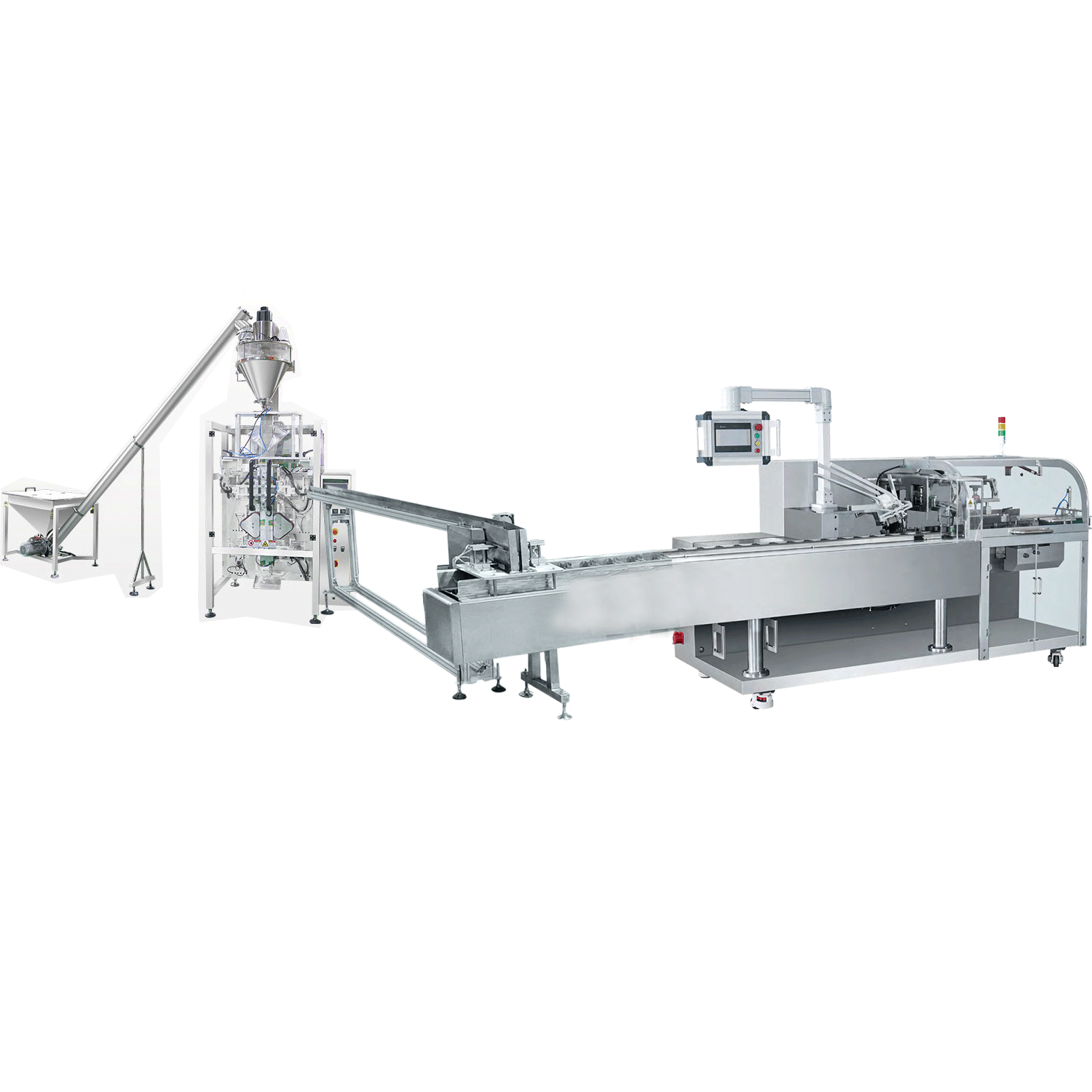 This packaging line features automatic product sorting, box loading, and sealing functions, and can be configured with labeling, inkjet coding, and case packing as required.