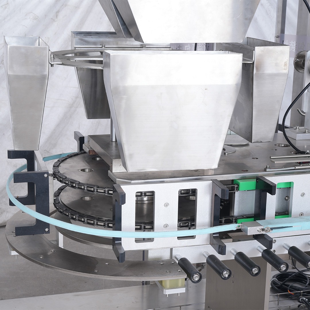 Vertical automatic cartoning machine designed for bulk products such as candy, chocolate, biscuits, hardware parts, and screws. Integrated with elevator and multihead weigher for accurate weighing, automatic cartoning, and carton sealing.